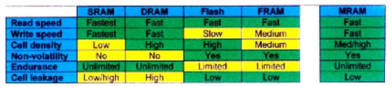 內(nèi)存選項的比較與其他內(nèi)存技術選項相比,MRAM具有明顯的優(yōu)勢(下表1)。