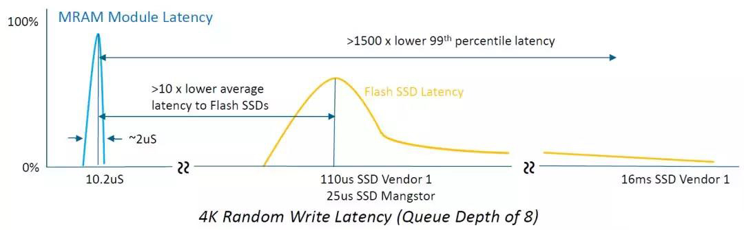 4. 隨機性能更高:MRAM是可以按字節隨機訪問的,而且隨機性能很高,所以作為寫緩存,提升IOPS;