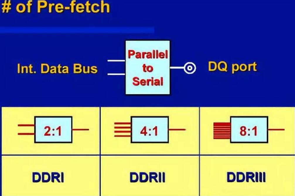 SDR SDRAM的兩倍,而且這樣做還不會(huì)增加功耗,至于定址與控制信號(hào)與SDR SDRAM相同,僅在上升沿傳輸,這是對(duì)當(dāng)時(shí)內(nèi)存控制器的兼容性與性能做的折中。