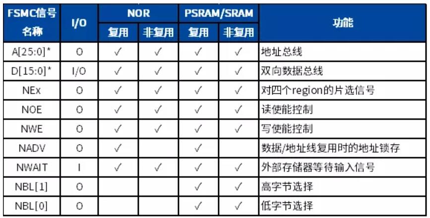 Nor Flash,可以選用復用或非復用方式擴展NOR Flash,還可以通過配置實現外擴8位總線或16位總線接口的NOR Flash。