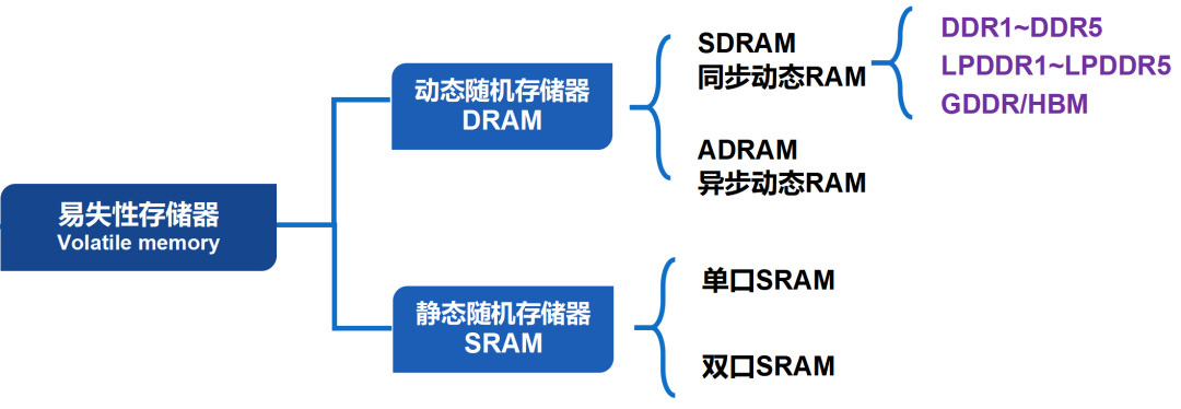 在過去幾十年內(nèi),易失性存儲器沒有特別大的變化,主要分為DRAM(動態(tài)隨機(jī)存取存儲器)和SRAM(靜態(tài)隨機(jī)存取存儲器)。它在任何時候都可以讀寫,RAM通常是作為操作系統(tǒng)或其他正在運(yùn)行程序的臨時存儲介質(zhì)(可稱作系統(tǒng)內(nèi)存)。