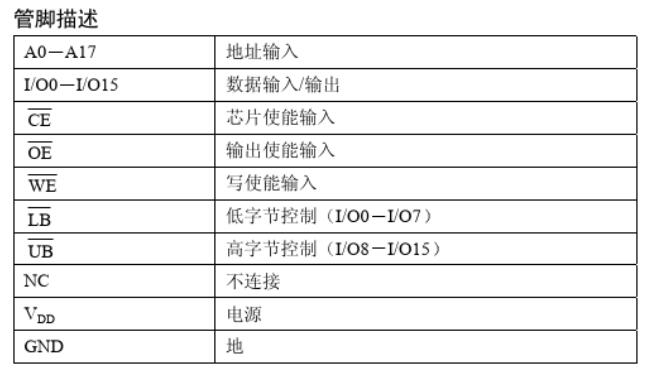 芯片使能輸入CE和輸出使能輸入OE可方便實(shí)現(xiàn)存儲器的擴(kuò)展。低電平有效的寫使能( WE )控制著存儲器的寫和讀操作。高字節(jié)(UB)和低字節(jié)(LB )控制信號控制著對數(shù)據(jù)字節(jié)的訪問。