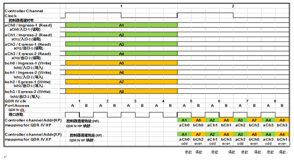 讀寫請求通過分階段來延遲與QDR-IV存儲器讀取延遲以及存儲控制器延遲的匹配。分階段設計也作為本地緩存累積延遲過程中的服務更新請求。在HP模式中,沒有統計/處理器更新地址限制通過四根通道中的任何一根。地址的發生可能是隨機的,并且無需給每根通道分配特定類型的地址。但由于在XP模式中存儲器的區塊結構和限制與其相關,因此通道0和1被分配到保存入口流數據的奇數地址位置,通道2和3被分配到保存出口流數據的偶數地址位置。這一獨特的安排可以預防可能在XP模式中發生的分塊限制位置。